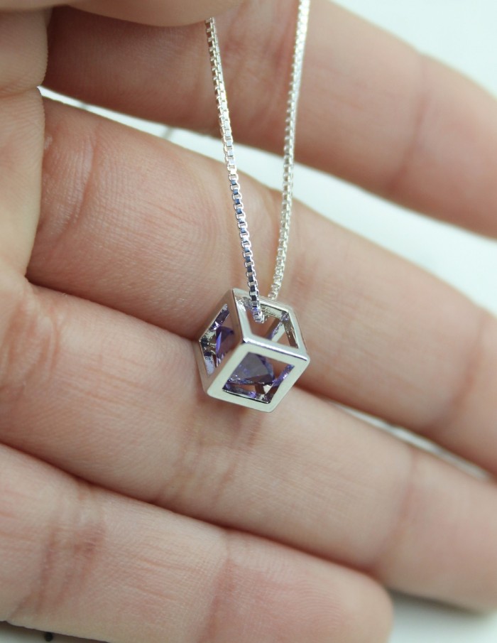 - Collar de plata de cubo con circón