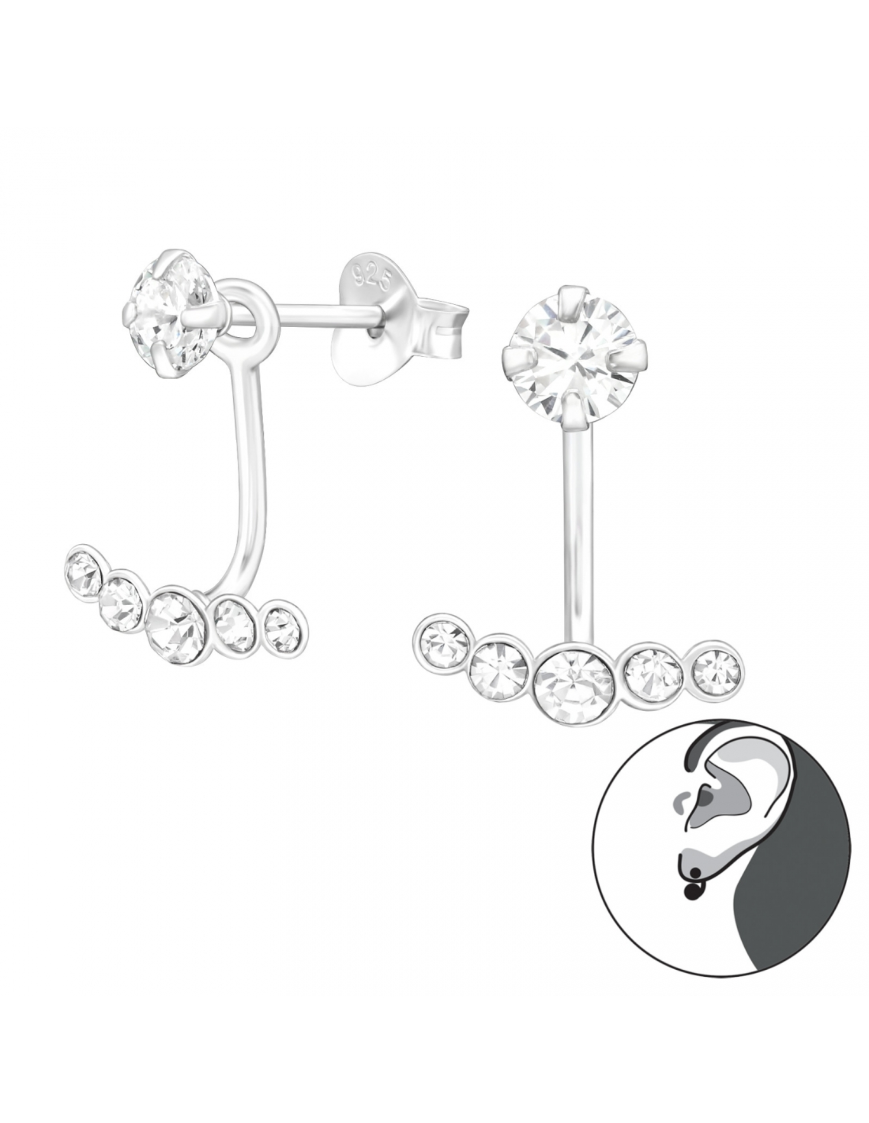 - Aros de plata con diseño y cristal 4mm