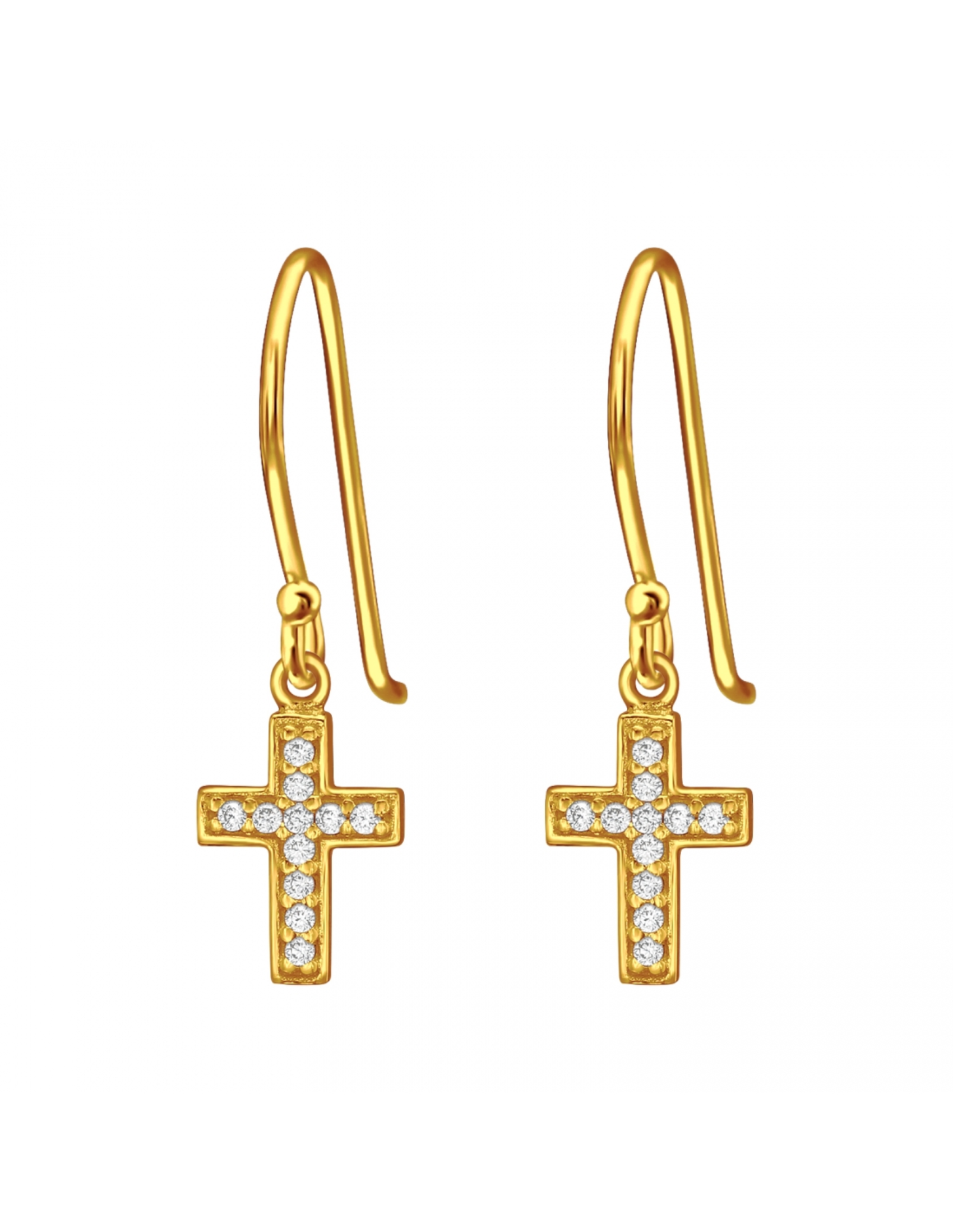 - Aros de plata de cruz con circones bañados en oro 24k